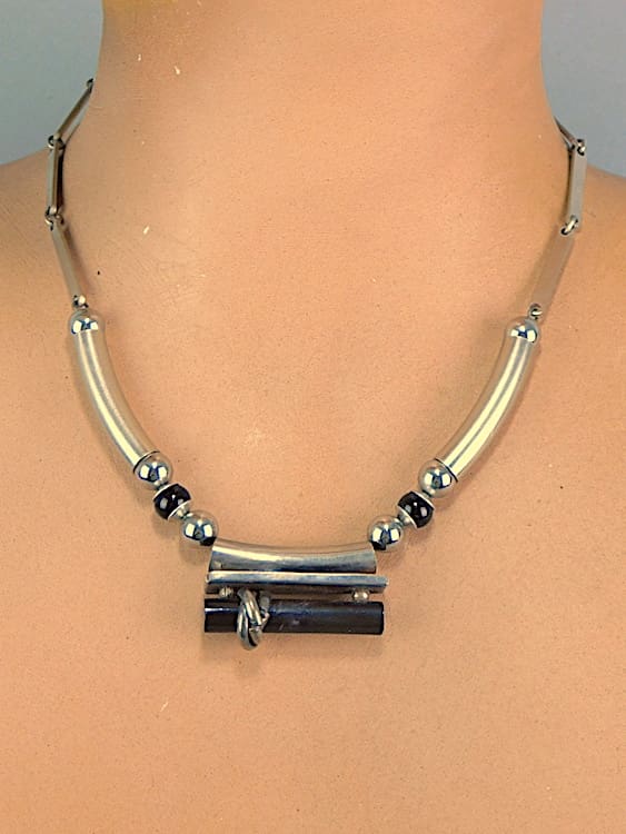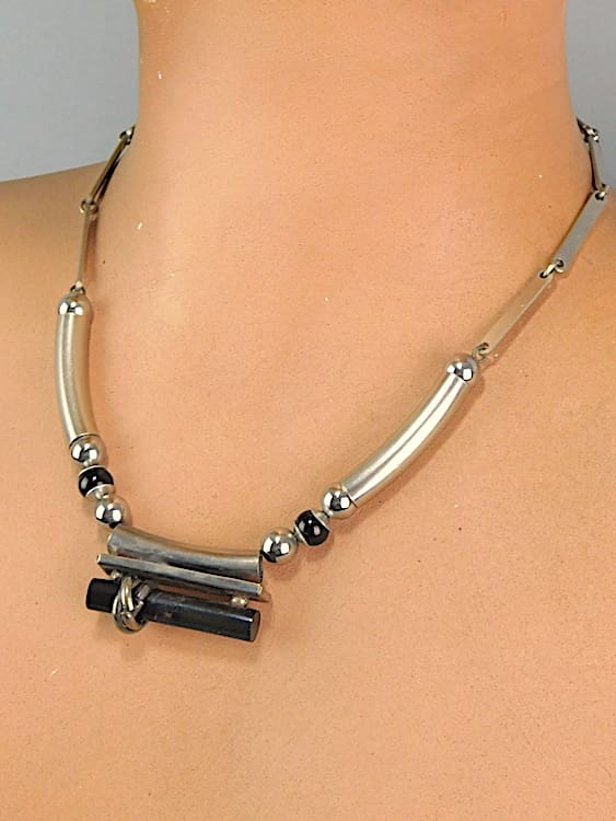 Modernist chrome and black galalith necklace, made in the early 1930’s by Bengel.