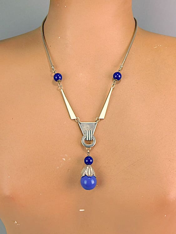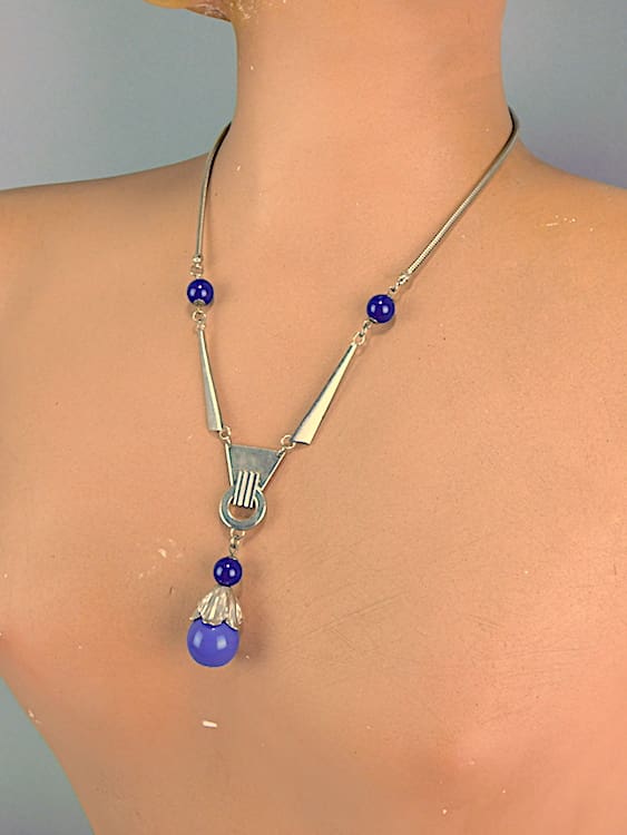 Early 1930’s Jakob Bengel Bauhaus design blue galalith necklace.