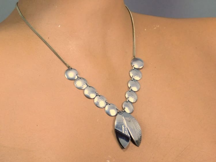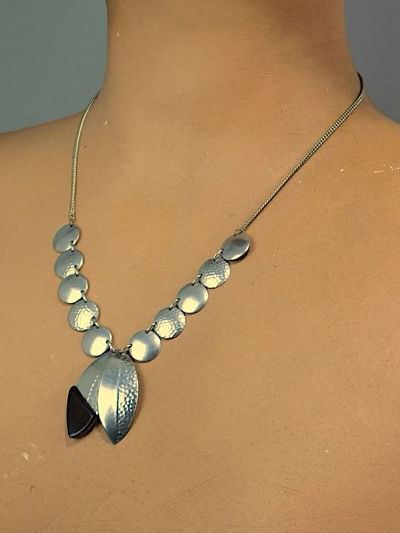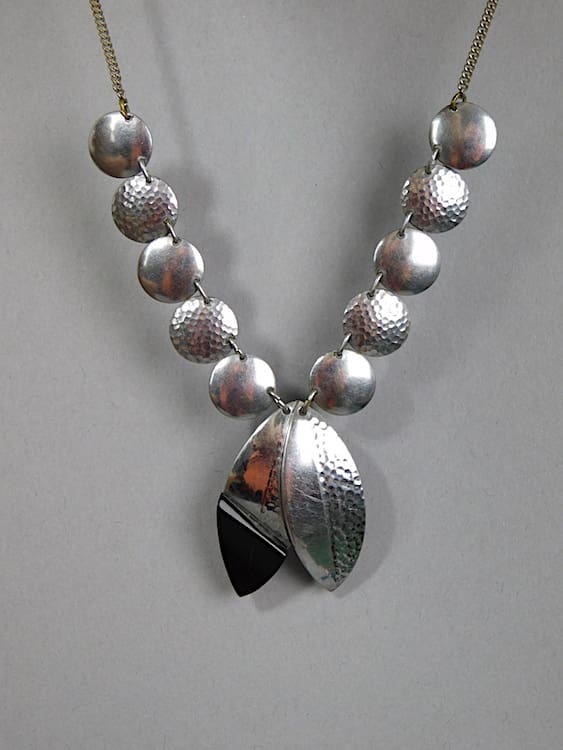 Black galalith and chrome leaf art deco necklace by Jakob Bengel in the early 1930s.