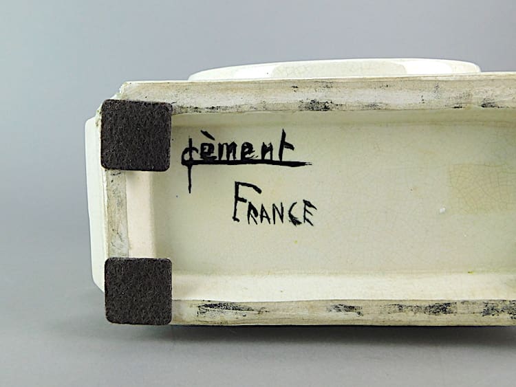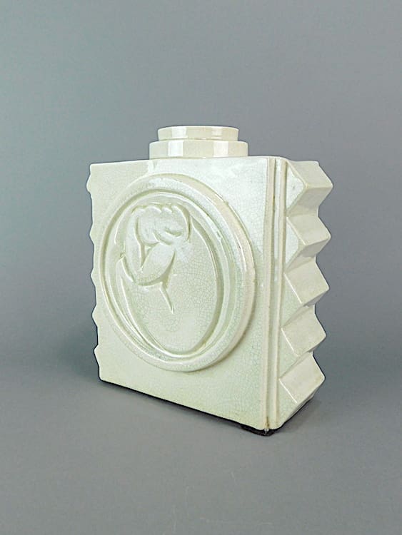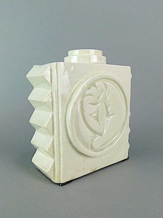 French art deco craquelier cubist creamy vase by St Clement. Signed to the base St Clement France.