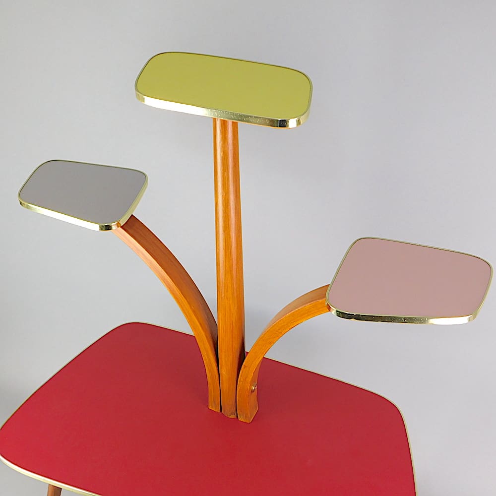 Very stylish plant holder table, probably dates to the 50’s. With coloured melamime shelves.