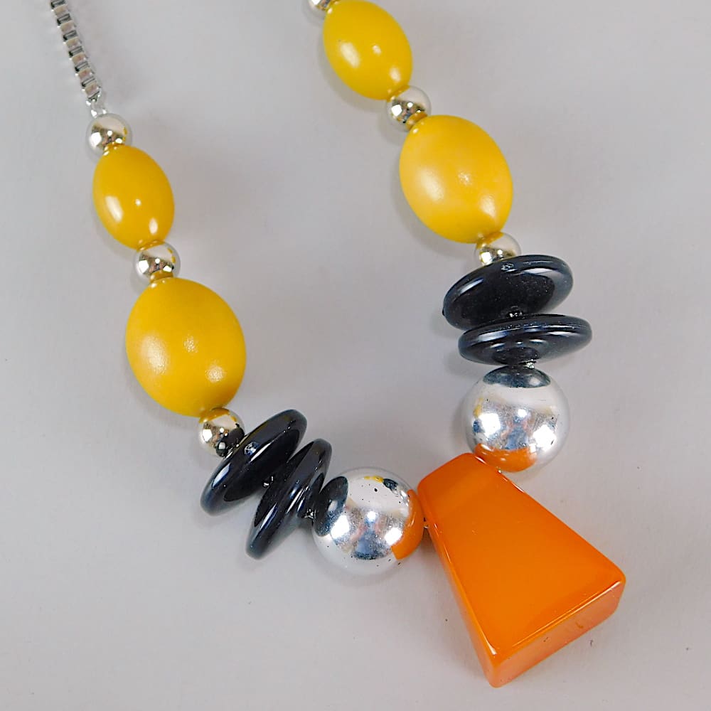Art deco modernist galalith and chrome modernist necklace.