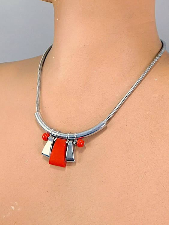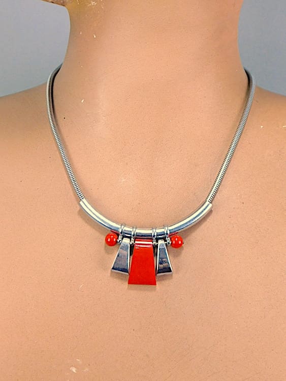 Red galalith and chrome necklace by the Jakob Bengel company.