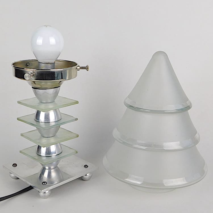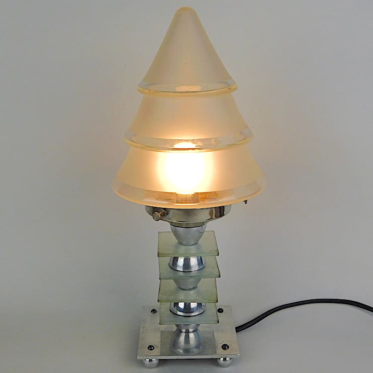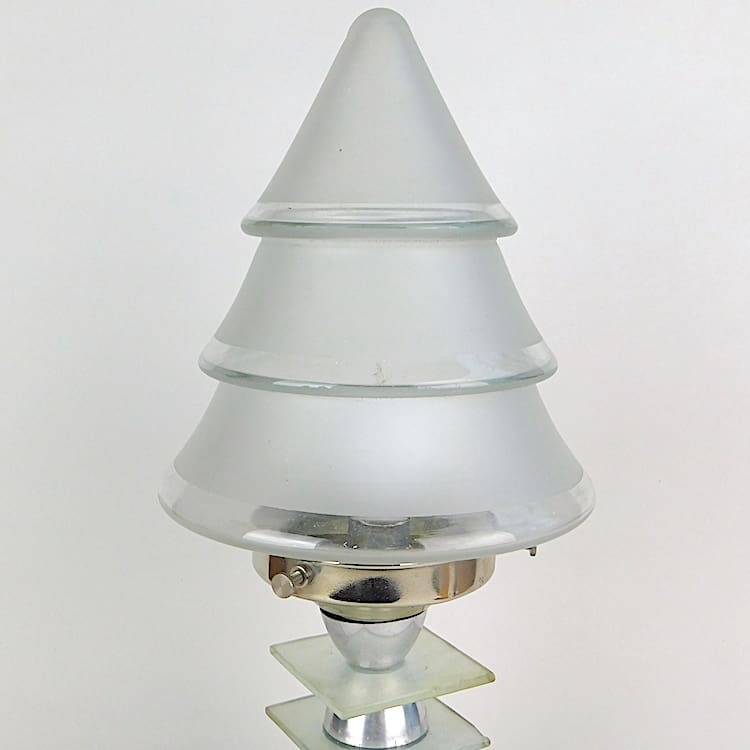 Amazing chrome Desney style stepped table lamp in the shape of a Christmas tree.