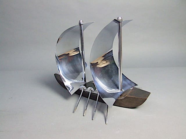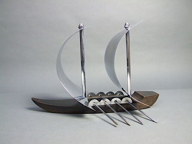 French ebonised wood and chrome stylised Viking ship.