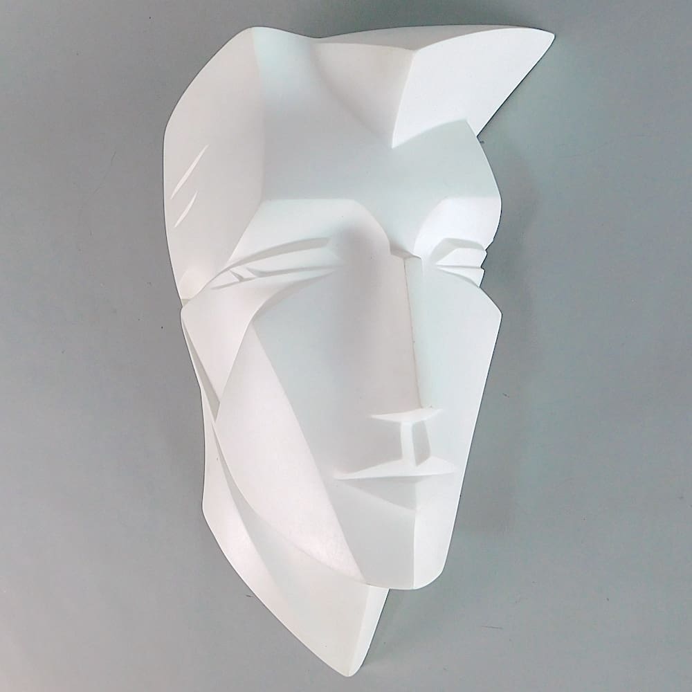 Straight from the family of Lindsey B, a pair of 1980s resin wall masks Brian and Brunhilde.