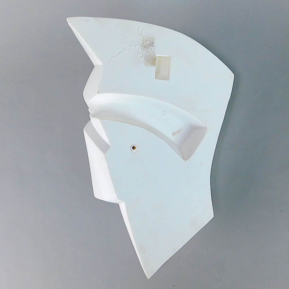 Straight from the family of Lindsey B, a pair of 1980s resin wall masks Brian and Brunhilde.