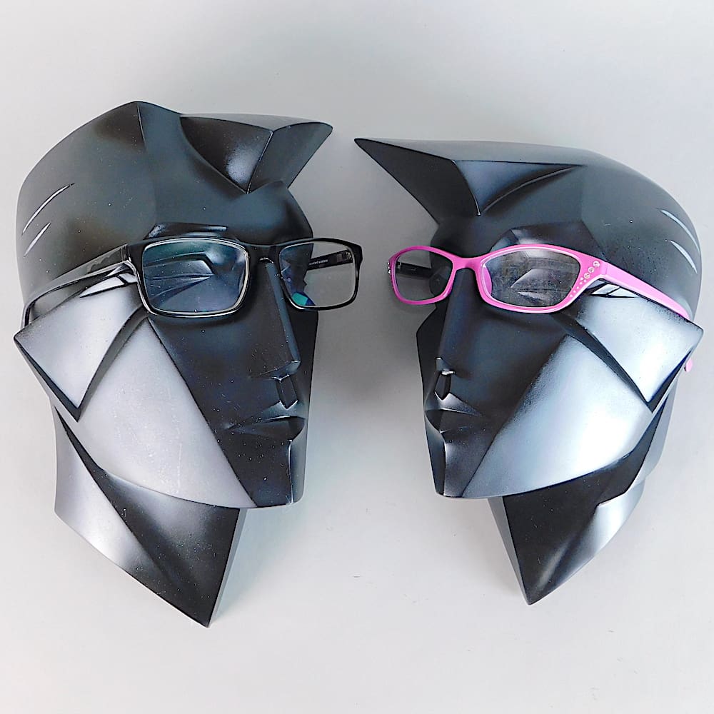 Straight from the family of Lindsey B, a pair of 1980s resin wall masks Brian and Brunhilde.