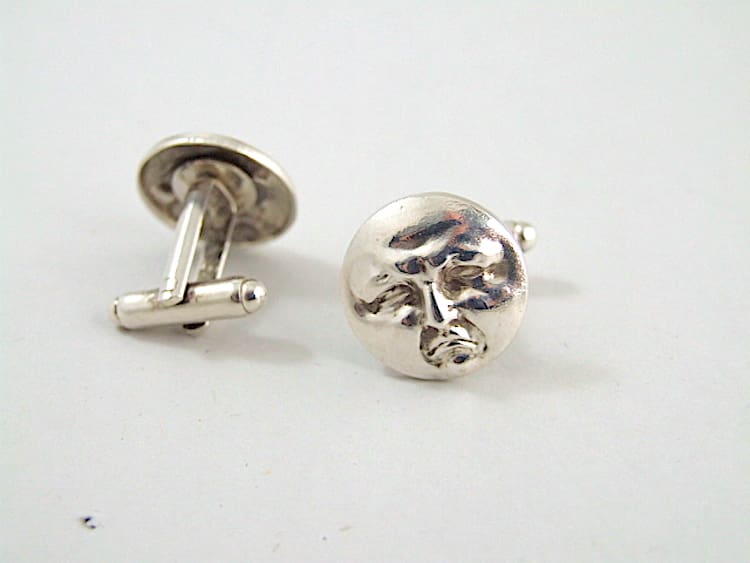 French art deco moon face cufflinks. Silver plated.