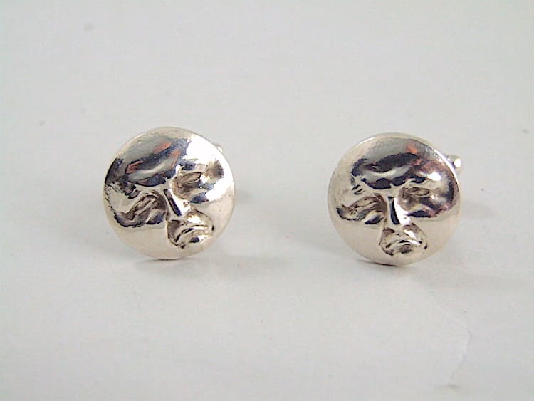 French art deco moon face cufflinks. Silver plated.