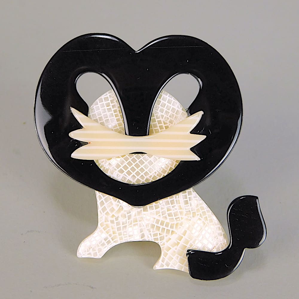 Rare and vintage Lea Stein lion brooch named Moustache.