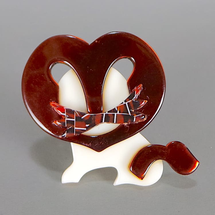 Rare and vintage Lea Stein lion brooch named Moustache.