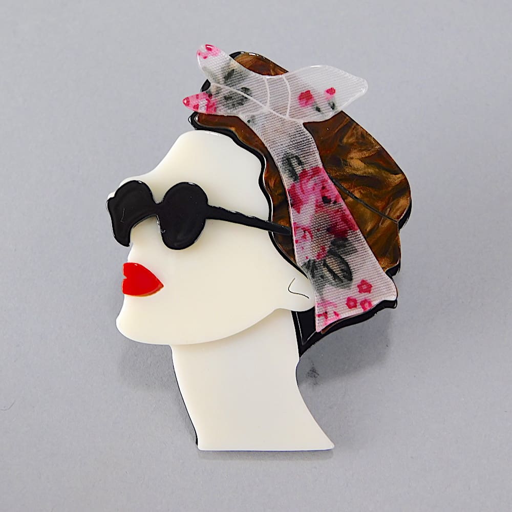 Hand made phenolic brooch fitted with a roll safety clasp.