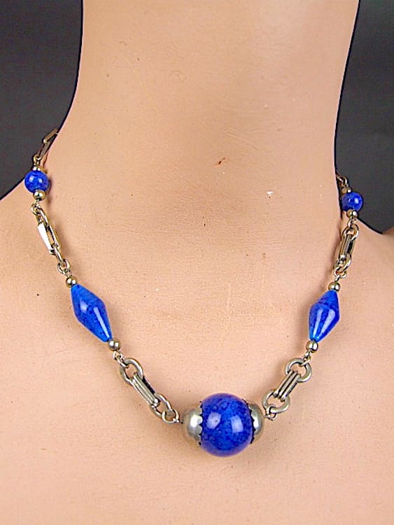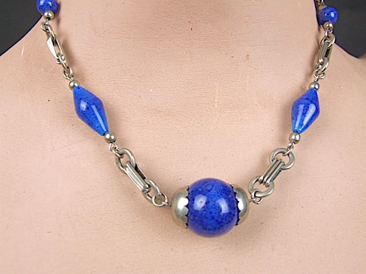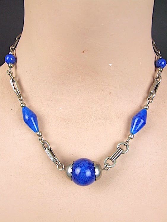 Lapis stone balls with chromed metal detail, made by Jakob Bengel in the early 1930s.