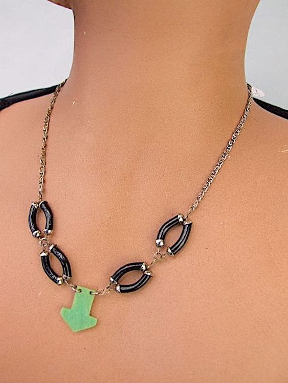 1930’s delicate black and green galalith necklace by the Jakob Bengel company.