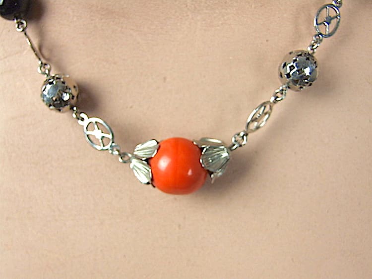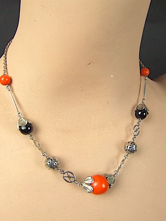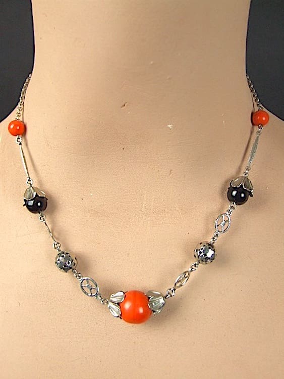 Coral and black glass balls with chromed metal detail, made by Jakob Bengel in the early 1930’s.