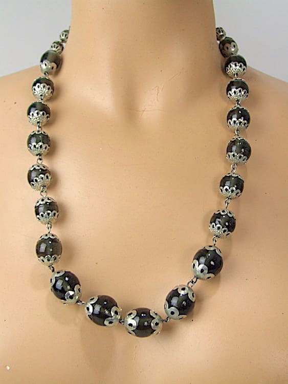 Vintage heavy black glass necklace with matching bracelet.