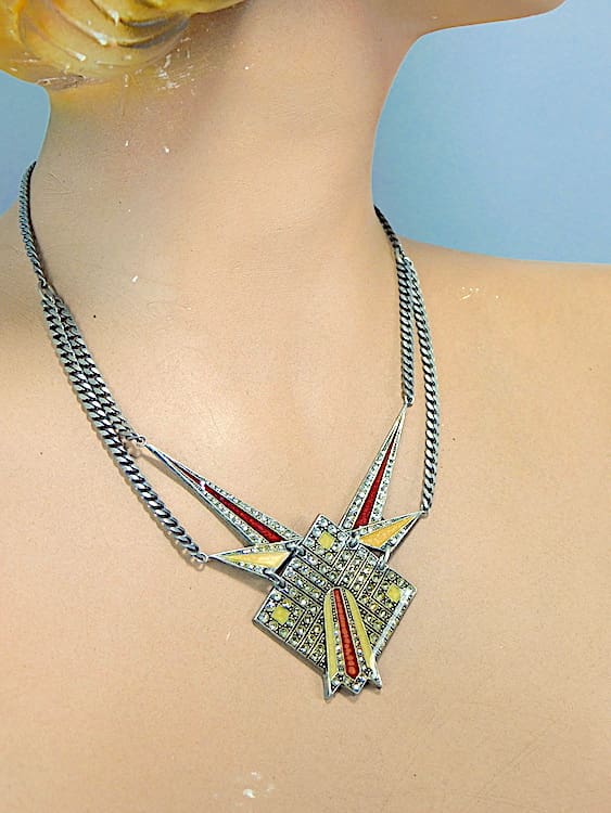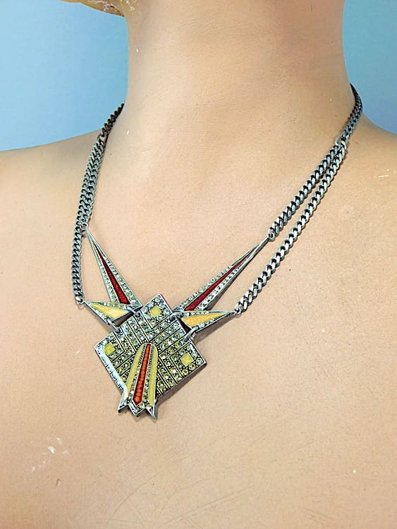 French red and gold enamel necklace by Pierre Bex, Paris.
