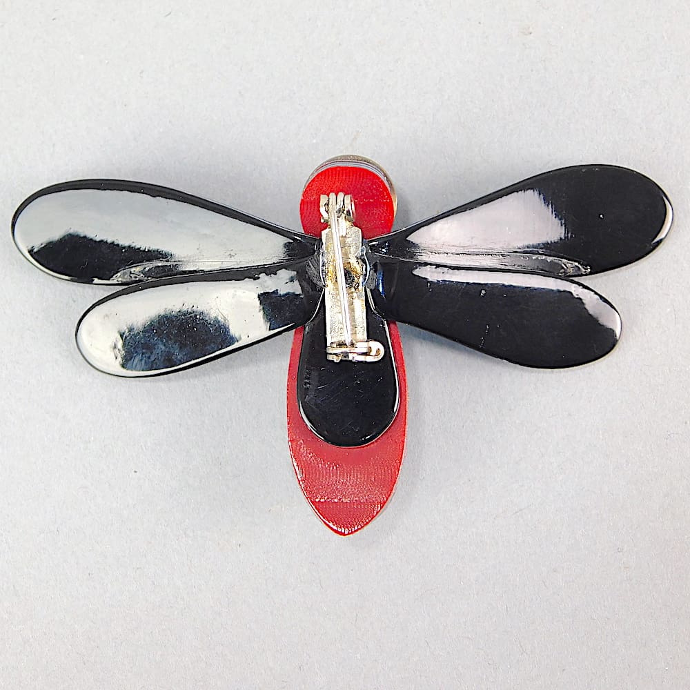 This is Lea Stein’s latest edition Bee brooch. It is larger than the old 1st edition, measuring approximately 3 inches across the wings, which I believe are the same wings she uses for her fairies. It is signed on the safety V clasp.