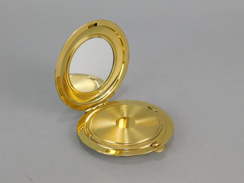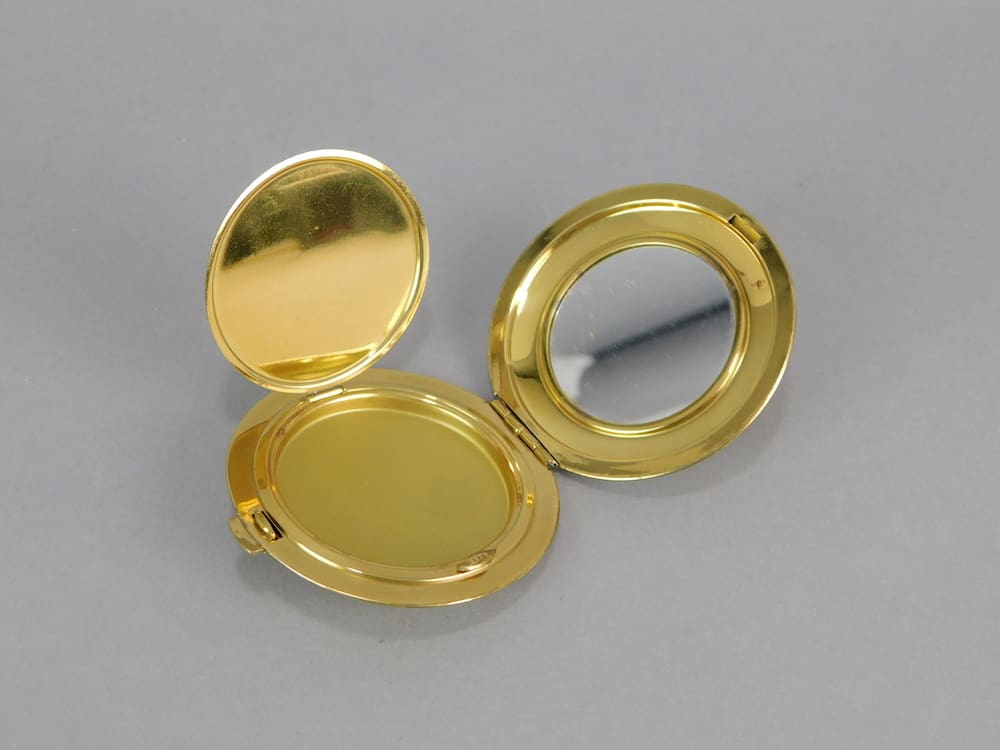 This 1930’s German cream enamel compact is old stock from a shop that was never sold, so it is in unused condition and ideal for use. Inside is a mirror to the lid with no puff or mesh.