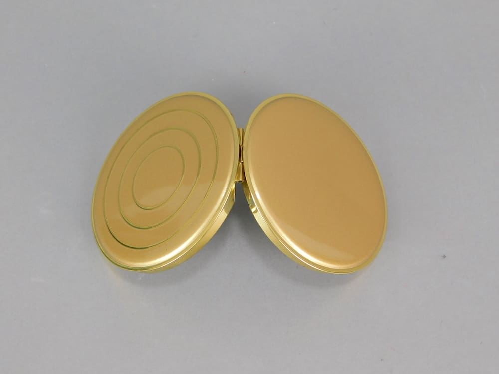 1930’s cream enamel compact, old stock from a shop in Germany that was never sold, so it is in unused condition and ideal for use. Inside is a mirror to the lid with no puff or mesh.