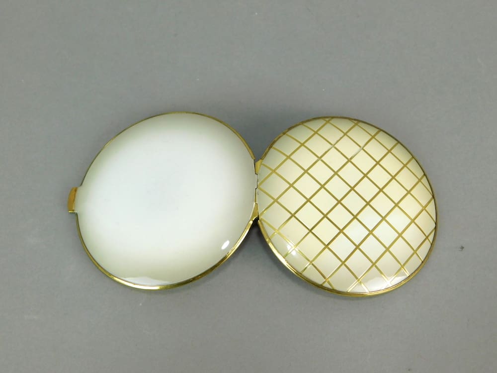 This 1930’s German cream enamel compact is old stock from a shop that was never sold.