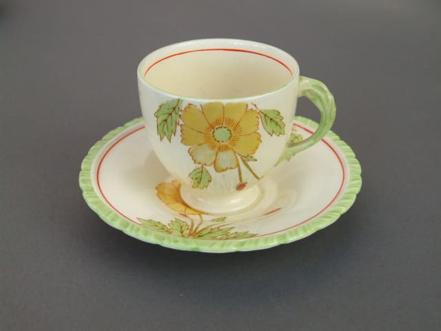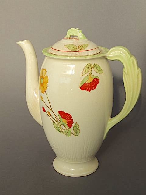 Pretty hand painted tea set, stamped Newhall to the base of the pot. Complete set of 15 pieces.