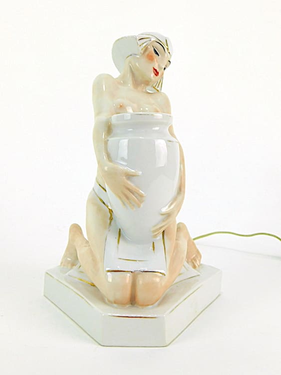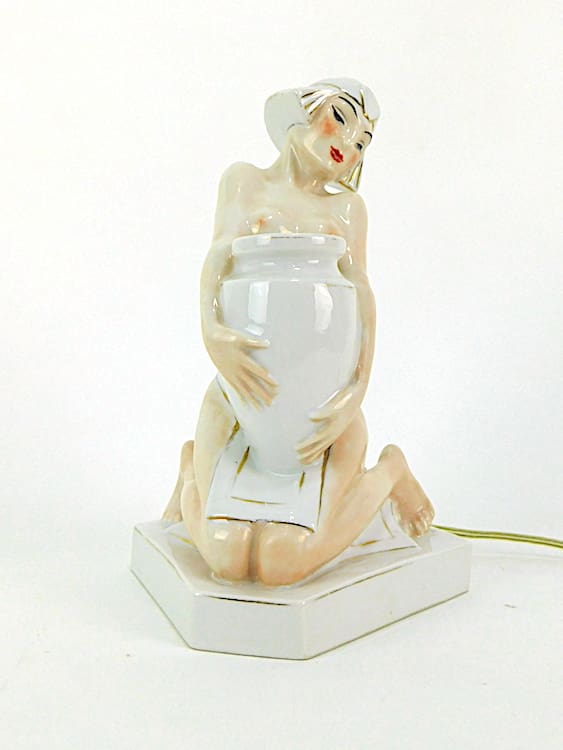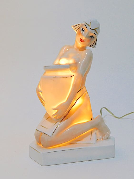 Egyptian themed night light hand painted, by Godard and signed to the back of the base A Godard. Also stamped Aladin under the base. There is a hole in the top which may have originally held a pot for perfume. Rewired, working and fitted with an on/off switch and an English plug.