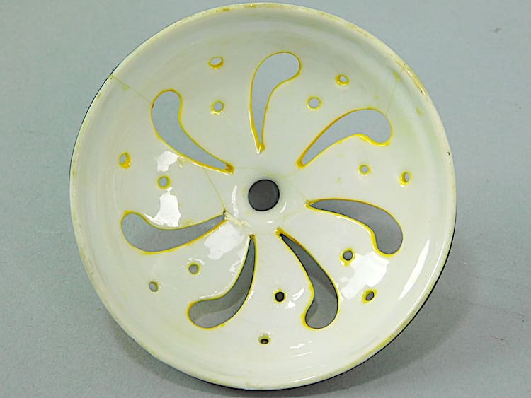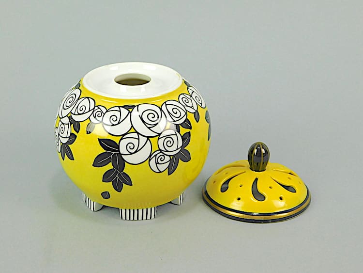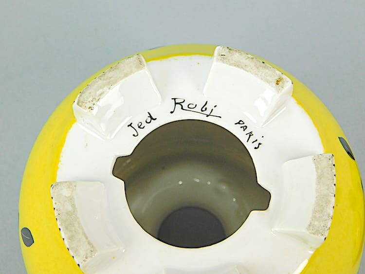 Pretty yellow, white and black lidded night light – no longer wired. Signed Jed Robj, Paris underneath.
