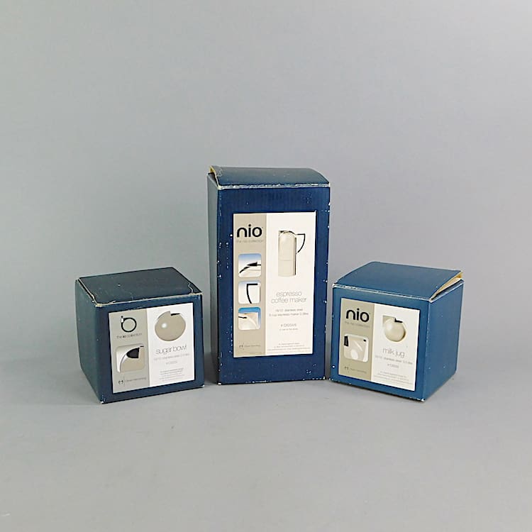 Stamped and marked under the bases – they are part of the Nio range. They come with their original boxes from new.