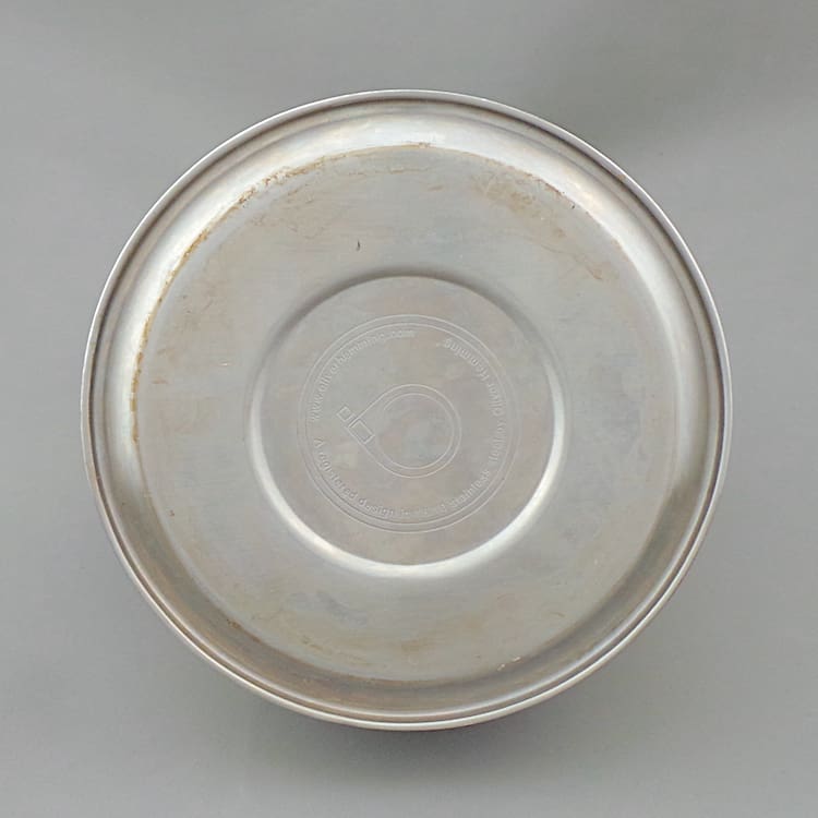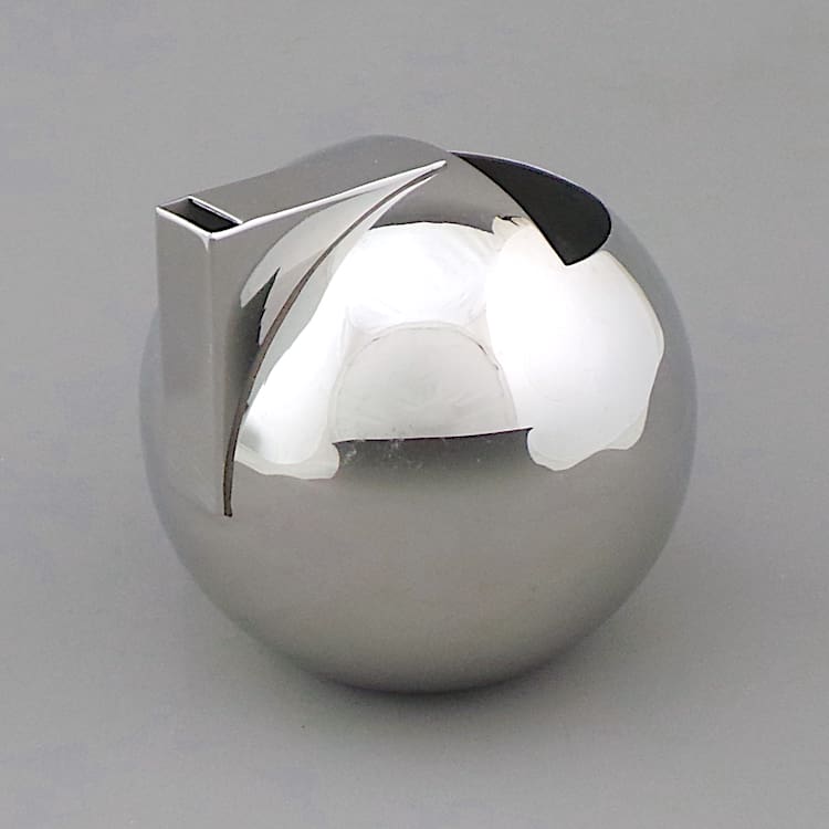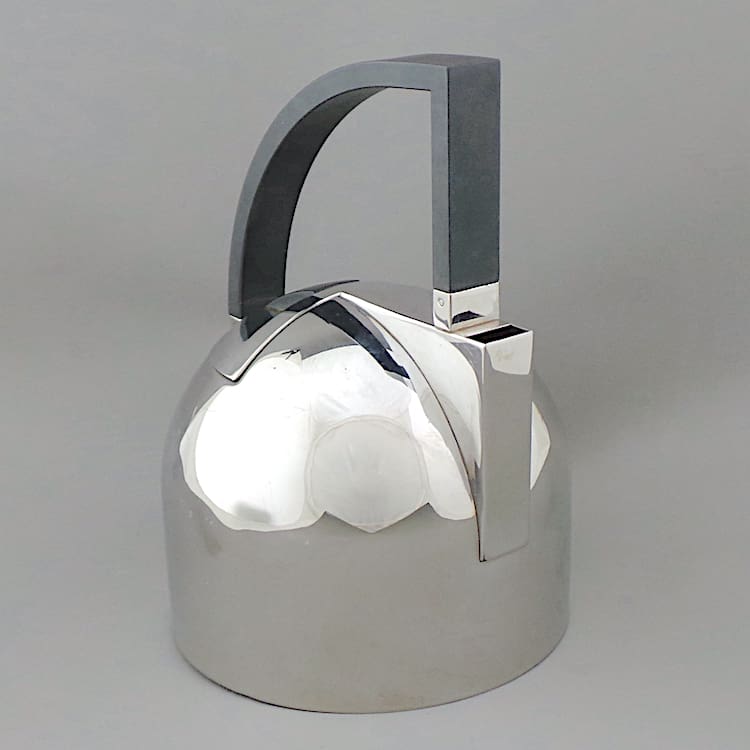 Modernist art deco style stainless steel 3 piece tea set. This is the Kettle with black phenolic handle.