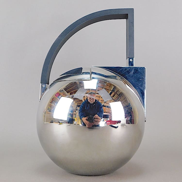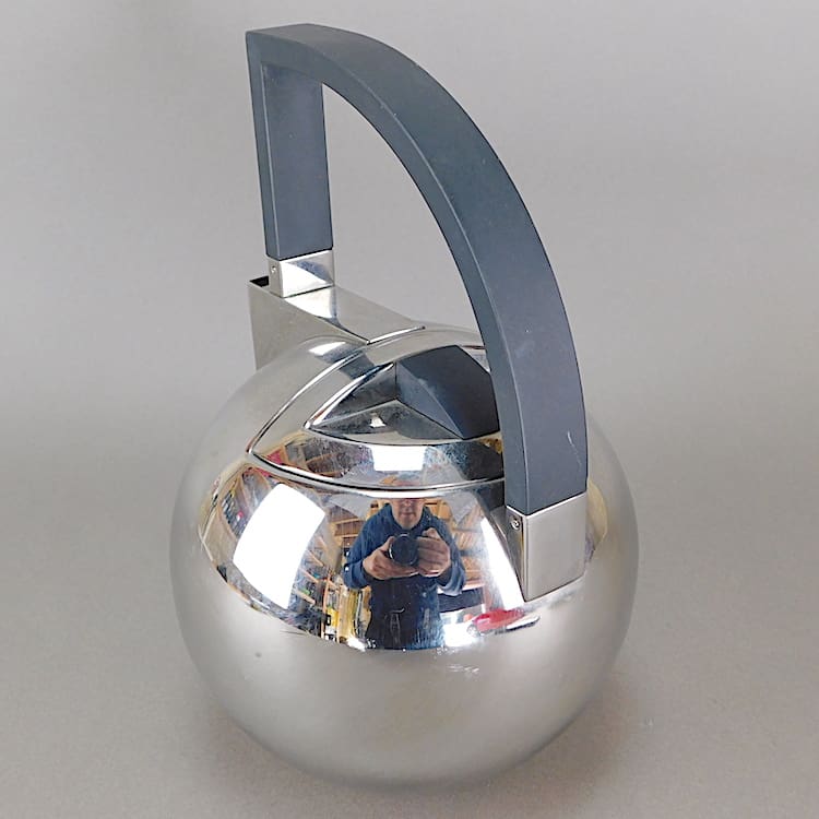 Modernist art deco style stainless steel teapot.