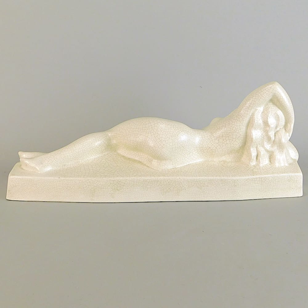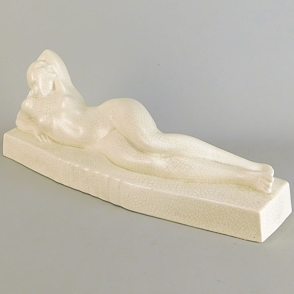 Reclining cream crackle glaze nude.