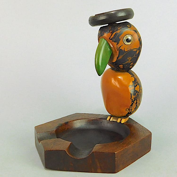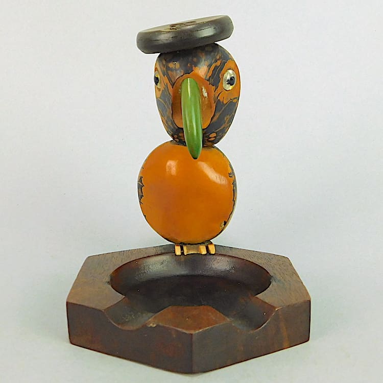 Another nutty nut bird ashtray with glass eyes and galalith beak, feet and hat.