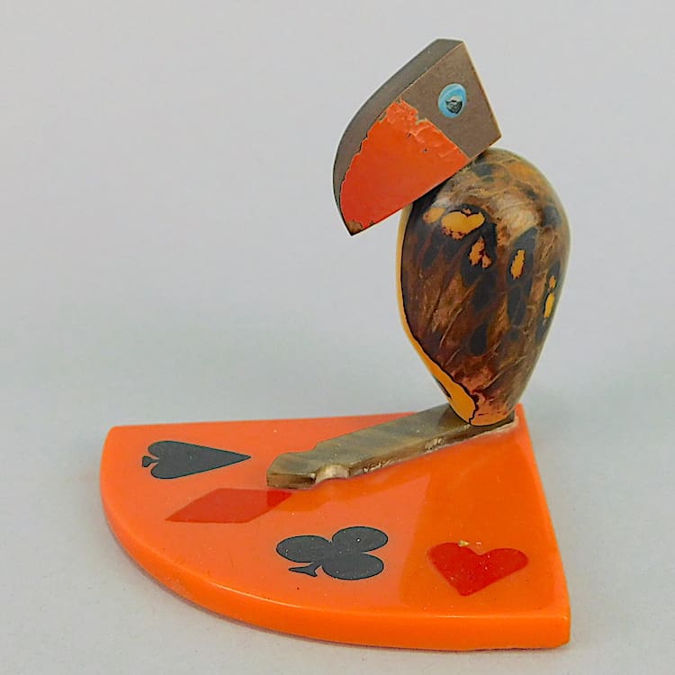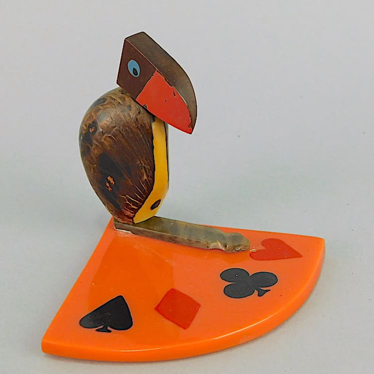 Dunhill style nut bird trump marker with wooden hand painted beak and eyes.