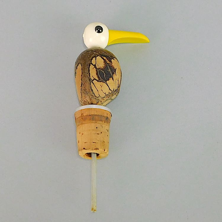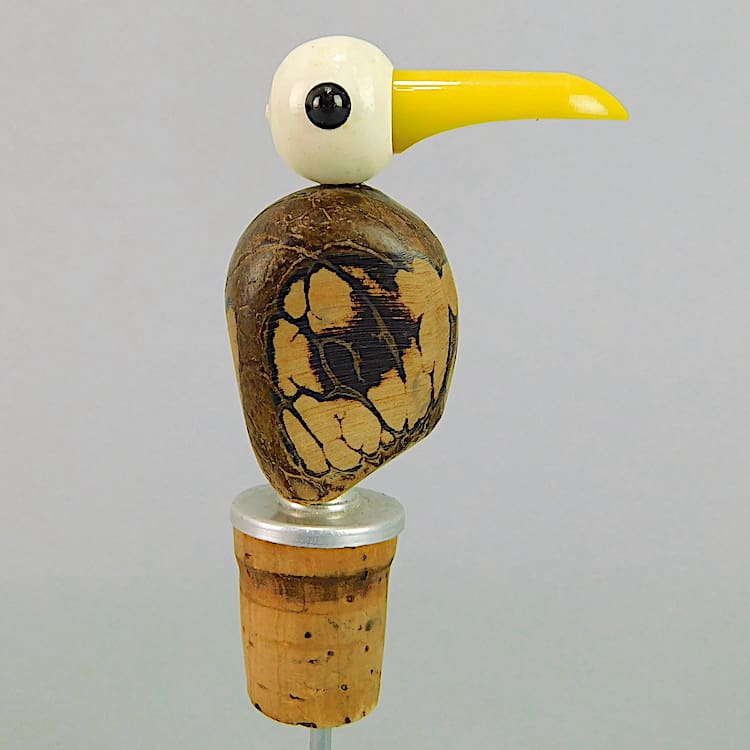 Nutbird drinks pourer bottle top. Modelled as a bird with a nut body and a phenolic head.