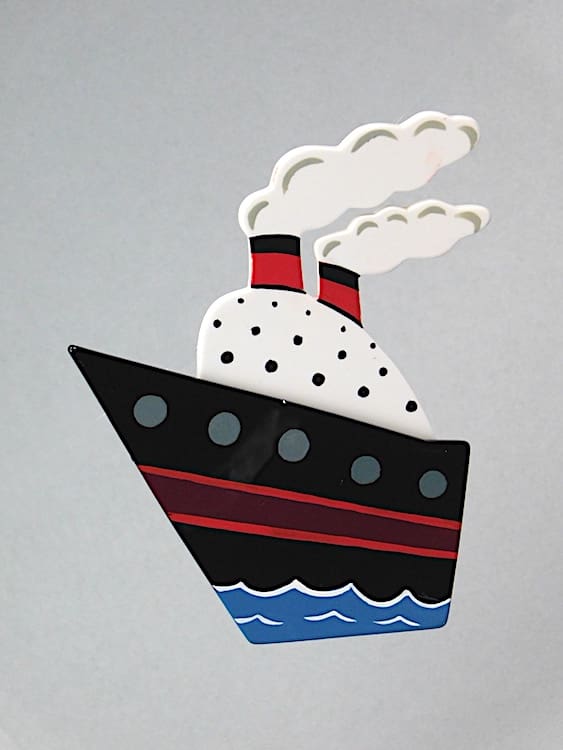 French hand painted, vintage galalith, art deco brooch as a large ocean liner.