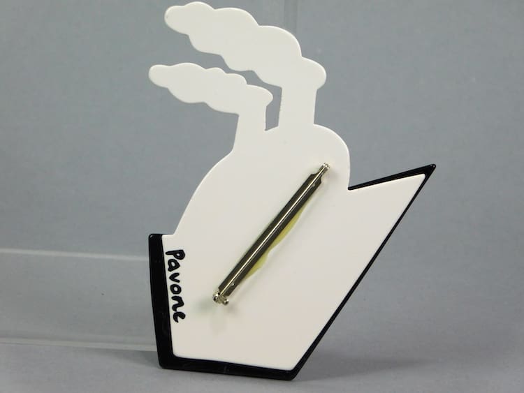 Signed Pavone to the reverse and fitted with a roll safety clasp.