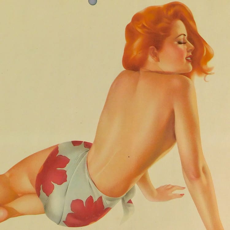 This is an original pin up girl from a vintage Esquire Girl calendar. Artwork by Alberto Varga with the printed signature to the bottom and verse by Earl Wilson.