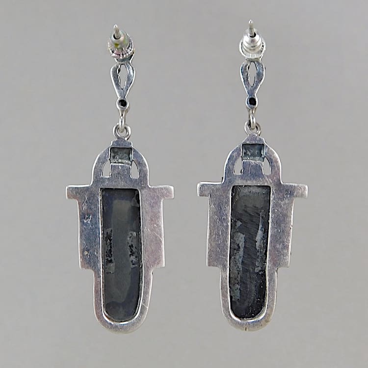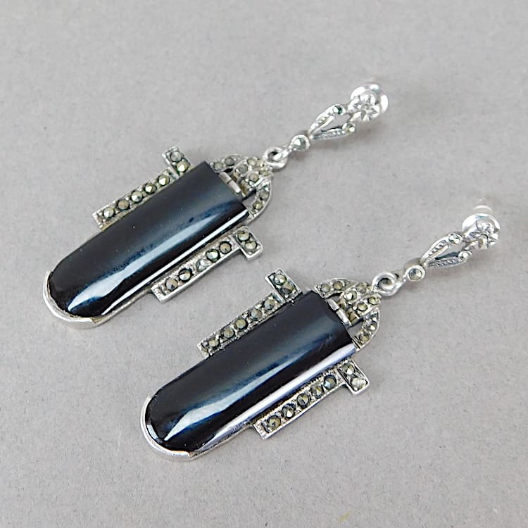 Black onyx and silver earrings in odillon shape.