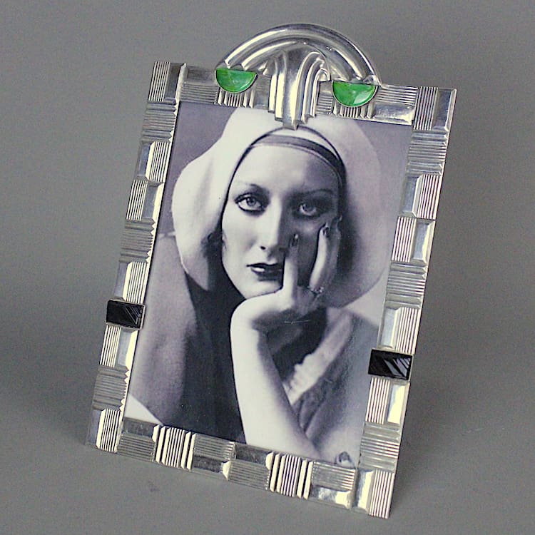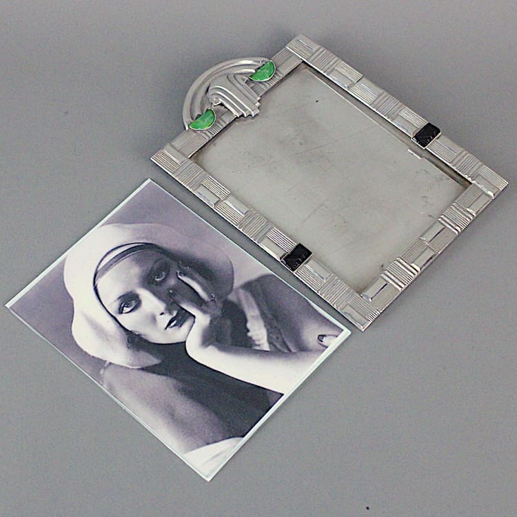 French Dillon design Art Deco silver plated photo frame with Black and green onyx stone detail.