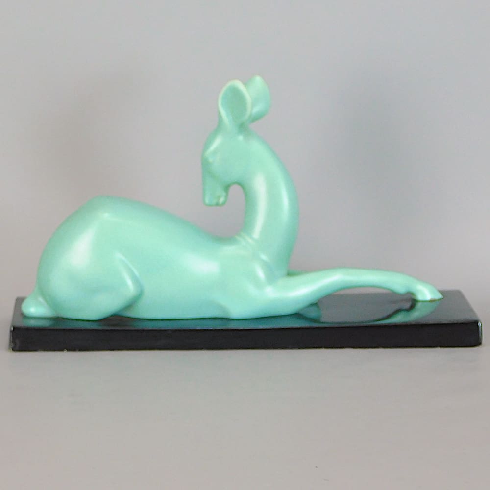 French art deco ceramic deer figure, marked to the base ODYV.