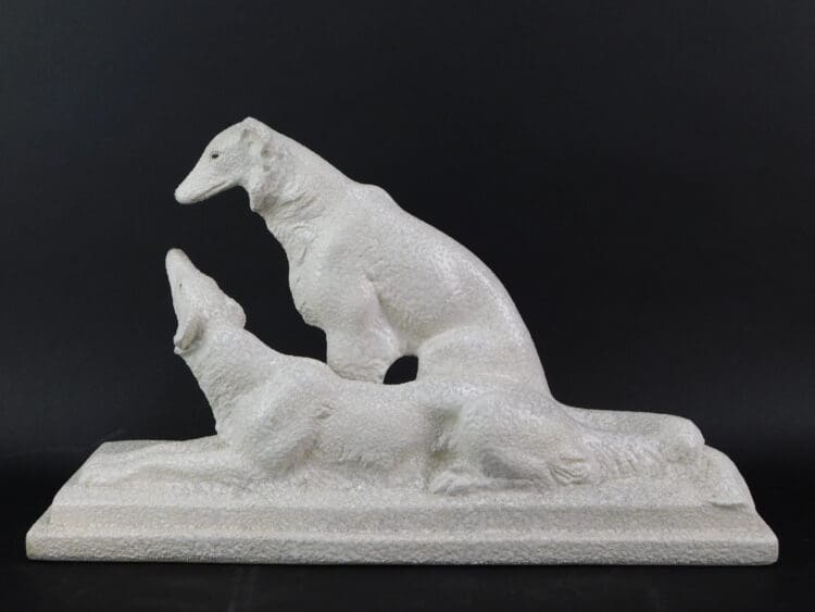 Made by the French faience company, ODYV, it has a bobble glaze which I believe was produced by using wax when glazing.