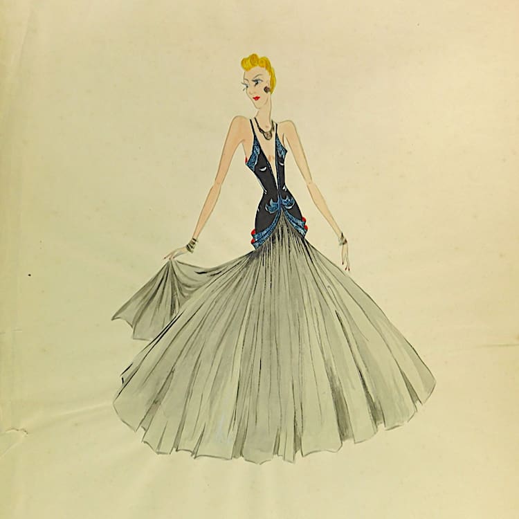 Watercolour on paper by the artist E. Appleby. Fashion/theatre design painted during the 1920s. Currently unframed.