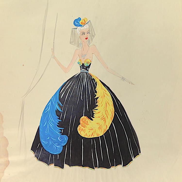 Watercolour on paper by the artist E. Appleby. Fashion/theatre design painted during the 1920s. Currently unframed.