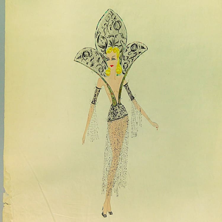 Watercolour on paper by the artist E. Appleby. Fashion/theatre design painted during the 1920s. Currently unframed.