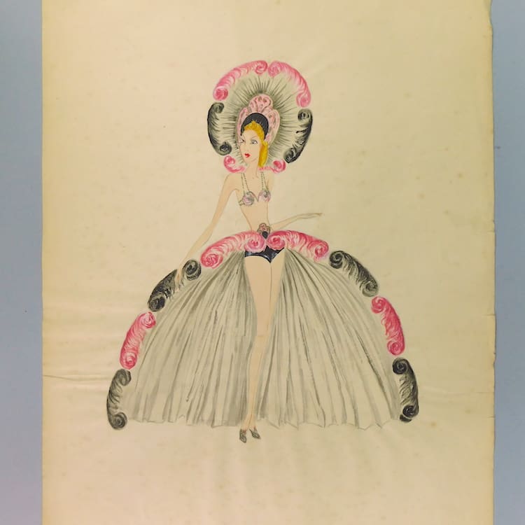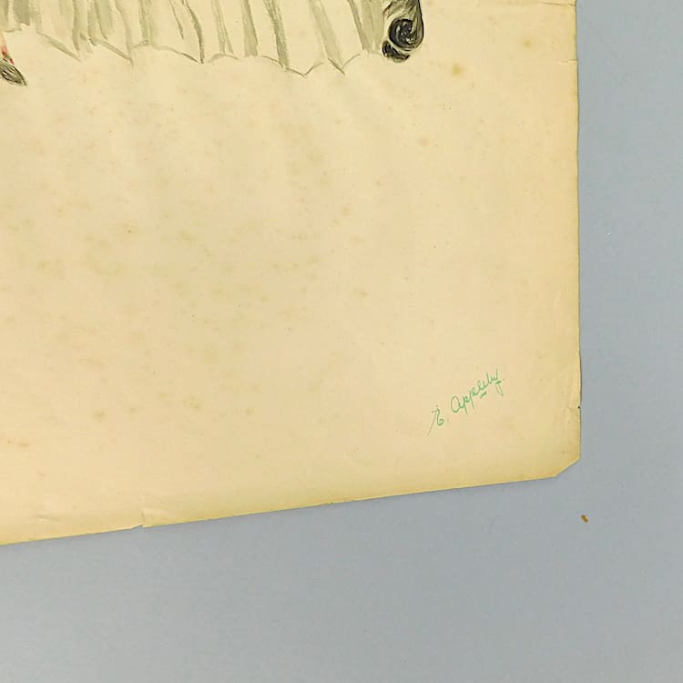 Watercolour on paper by the artist E. Appleby. Fashion/theatre design painted during the 1920s. Currently unframed.