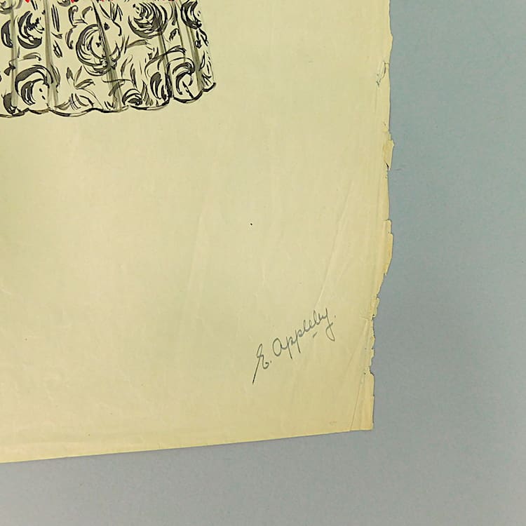 Watercolour on paper by the artist E. Appleby. Fashion/theatre design painted during the 1920s. Currently unframed.