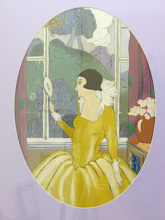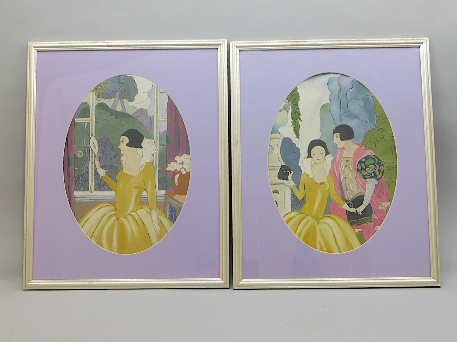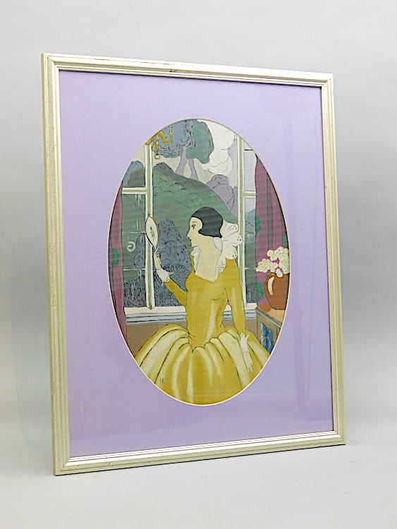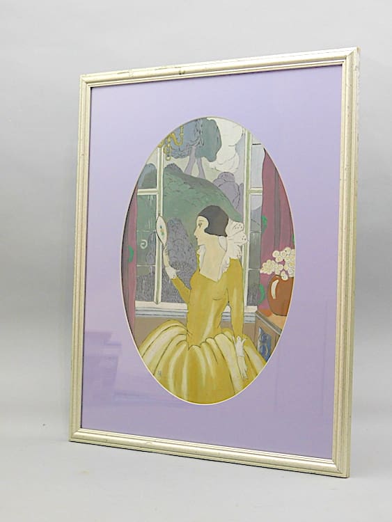 This lovely romantics oil painting (Right) is of an Elizabethan style lady holding a mirror. It is signed (initialled), and framed in a contemporary silver wood frame.