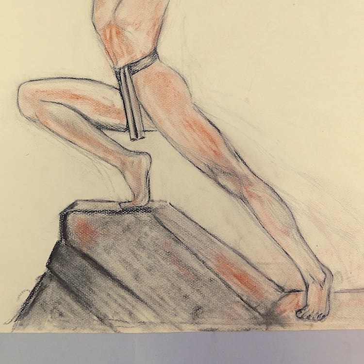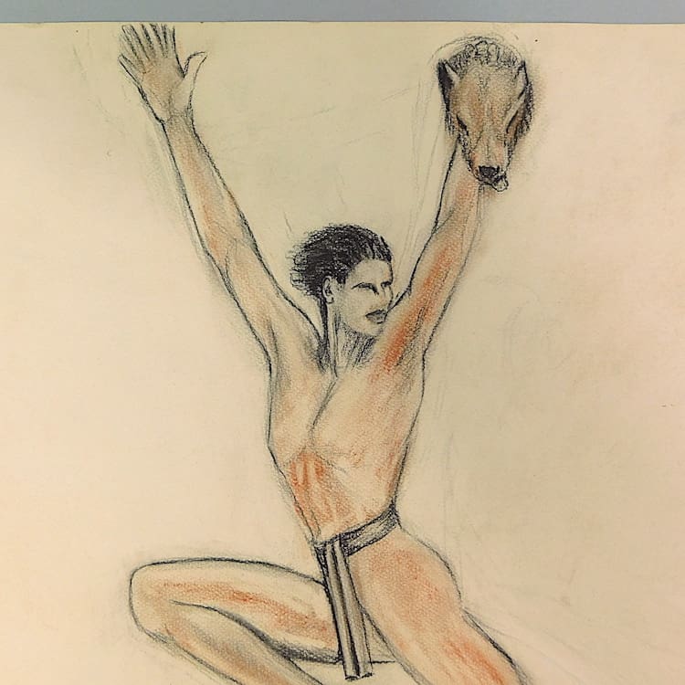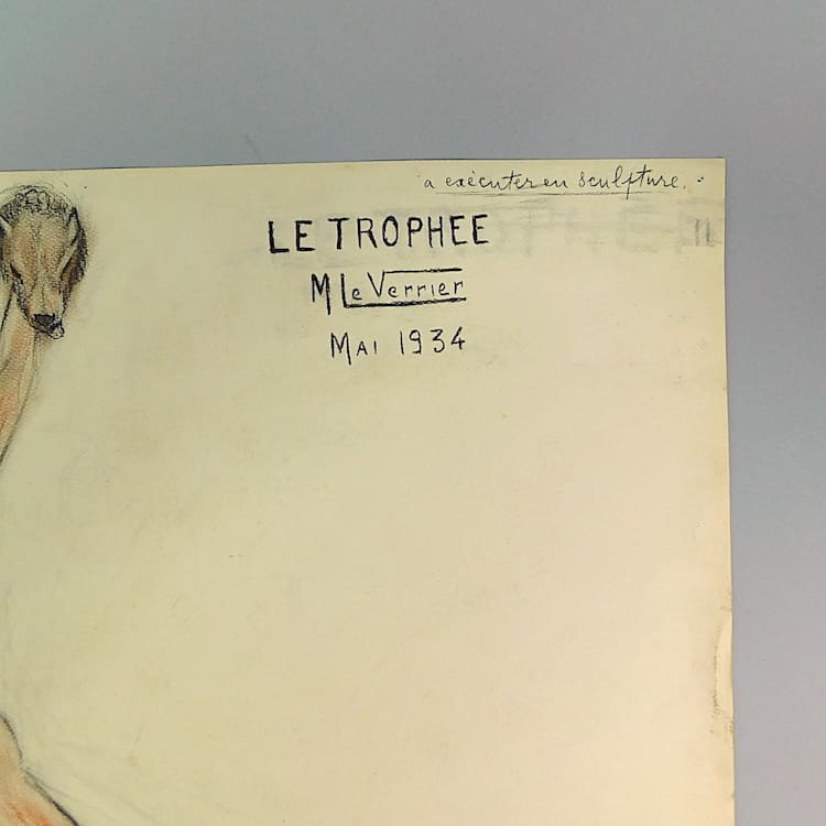 Original art work in pastille and charcoal on paper by Max Le Verrier – a subject design for a statue that never went into production.